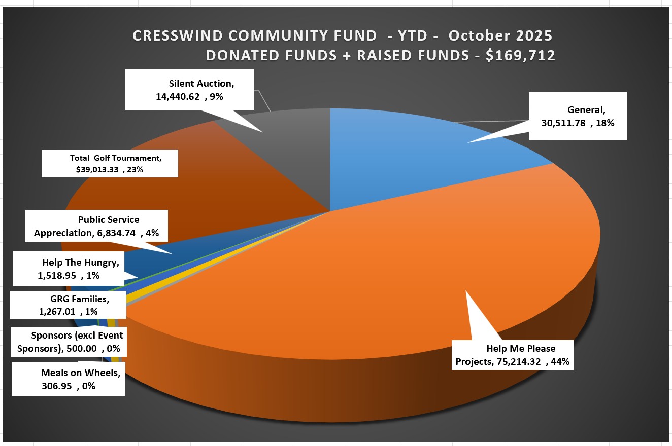 Each year brings different challenges and needs but Cresswind steps up to meet them. Currently it is inflation with impacts on food and energy costs for individuals and organizations. CWCF thanks everyone that continue to make it possible to meet those needs!